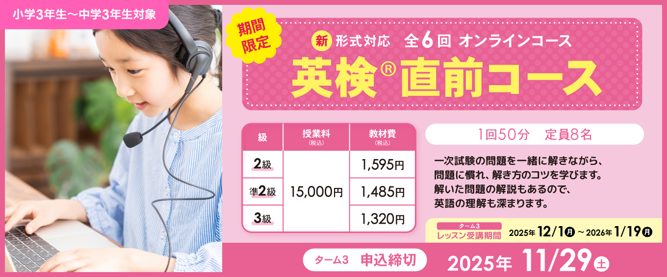 英会話イーオン、オンライン校キッズクラス、高校生以上クラスにて2026年1月英検(R)試験に向け「英検(R)対策直前コース」全6回開講