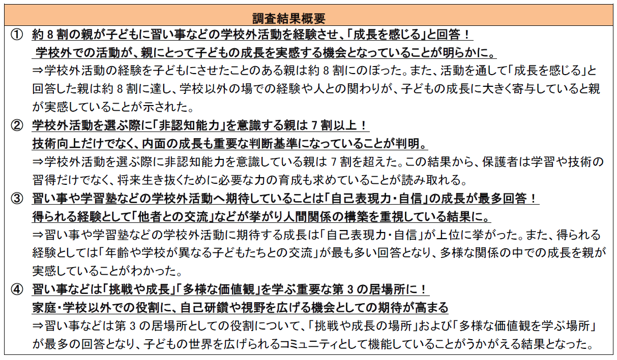 8割以上の親が「習い事・学習塾経験が子どもの成長につながった」と実感!「習い事・学習塾に関する意識調査」