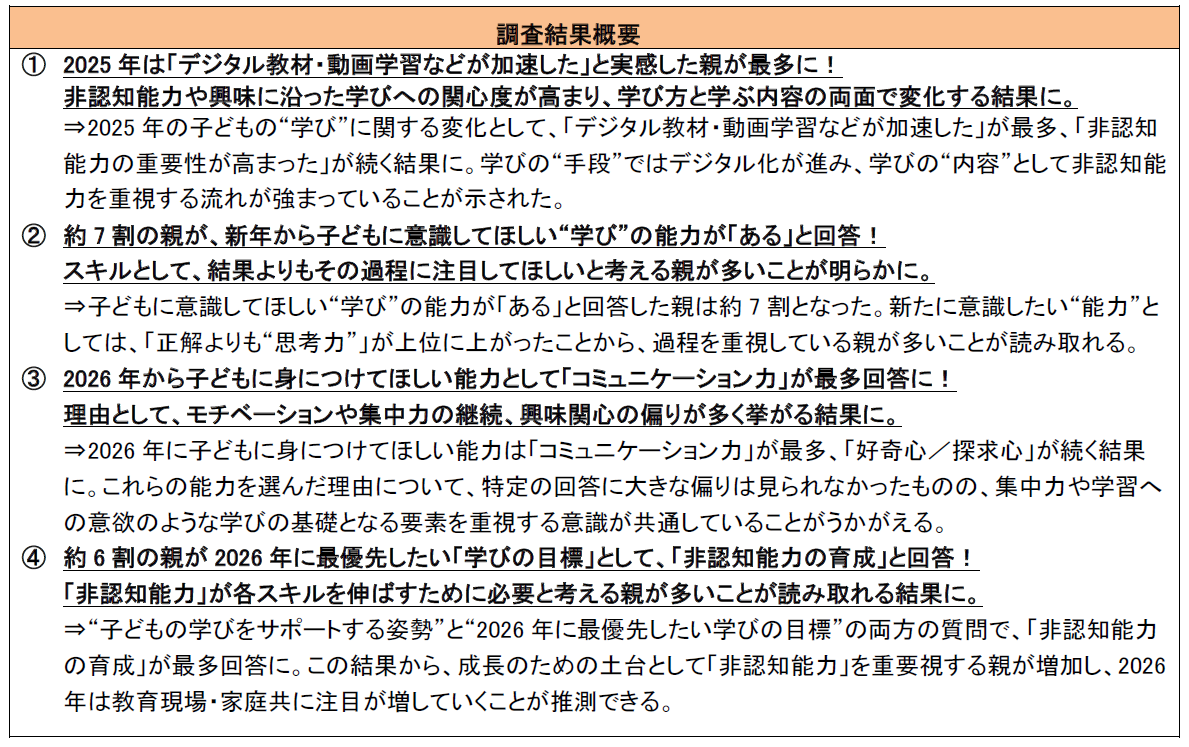約6割の親が、最優先したい子どもの教育目標に“非認知能力の育成”を回答!「2026年の学びや目標立てに関する意識調査」(PR TIMES トレンド)