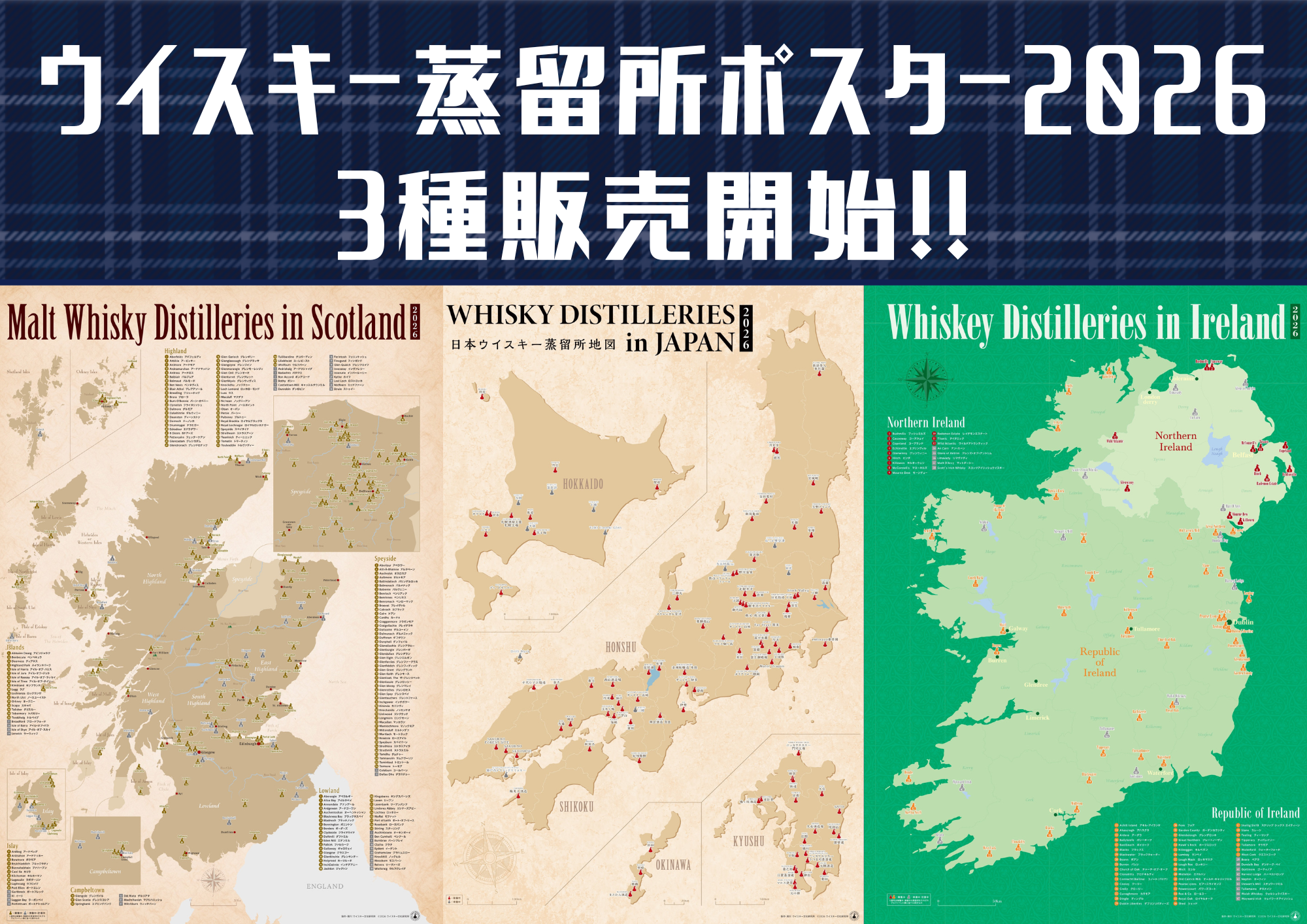 最新ウイスキー蒸留所ポスター3種(ジャパニーズ、スコッチ、アイリッシュ)本日より販売開始!