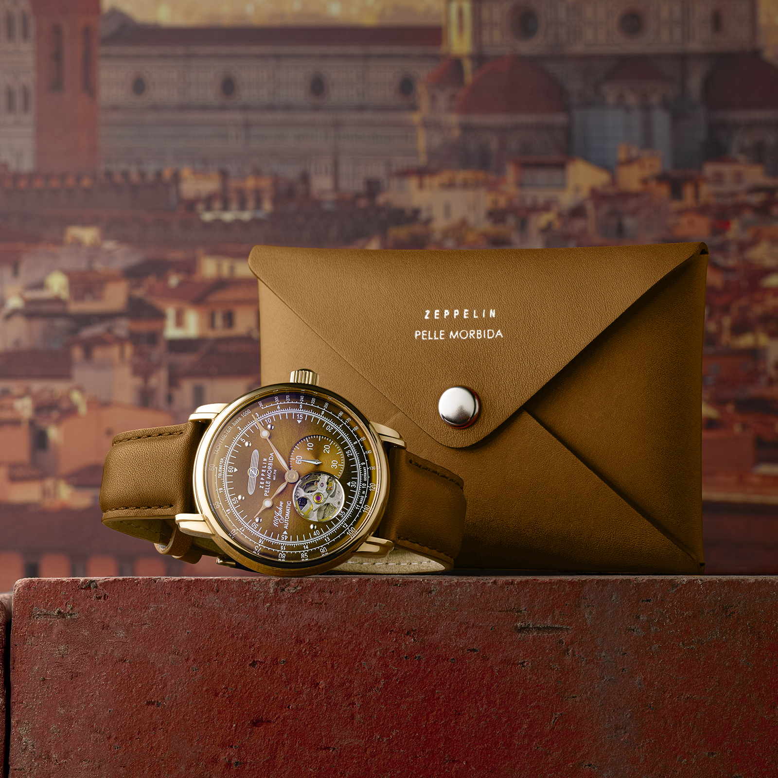 空と海を超えて――ZEPPELIN × PELLE MORBIDA コラボレーション、第2章の旅路へ。 赤煉瓦色のトラベルウォッチセットを、100本限定で発売。