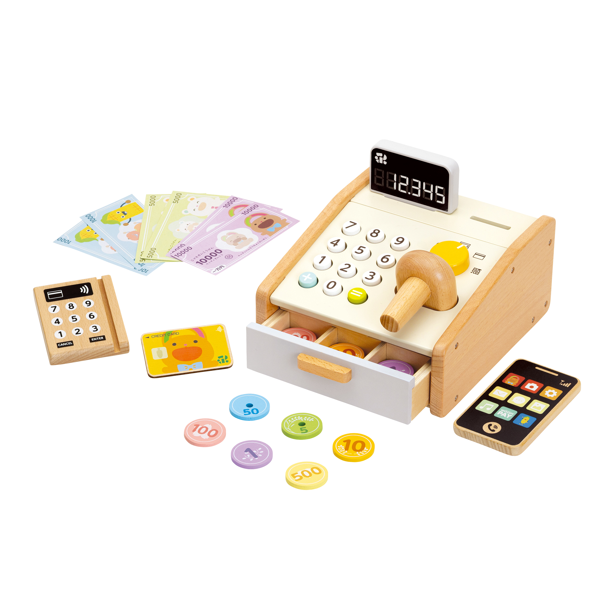 レジ・バーコード・決済端末まで!お買いものごっこが未来の『社会性』と『ことば』を育む-ウッディプッディ新作レジスターセット登場