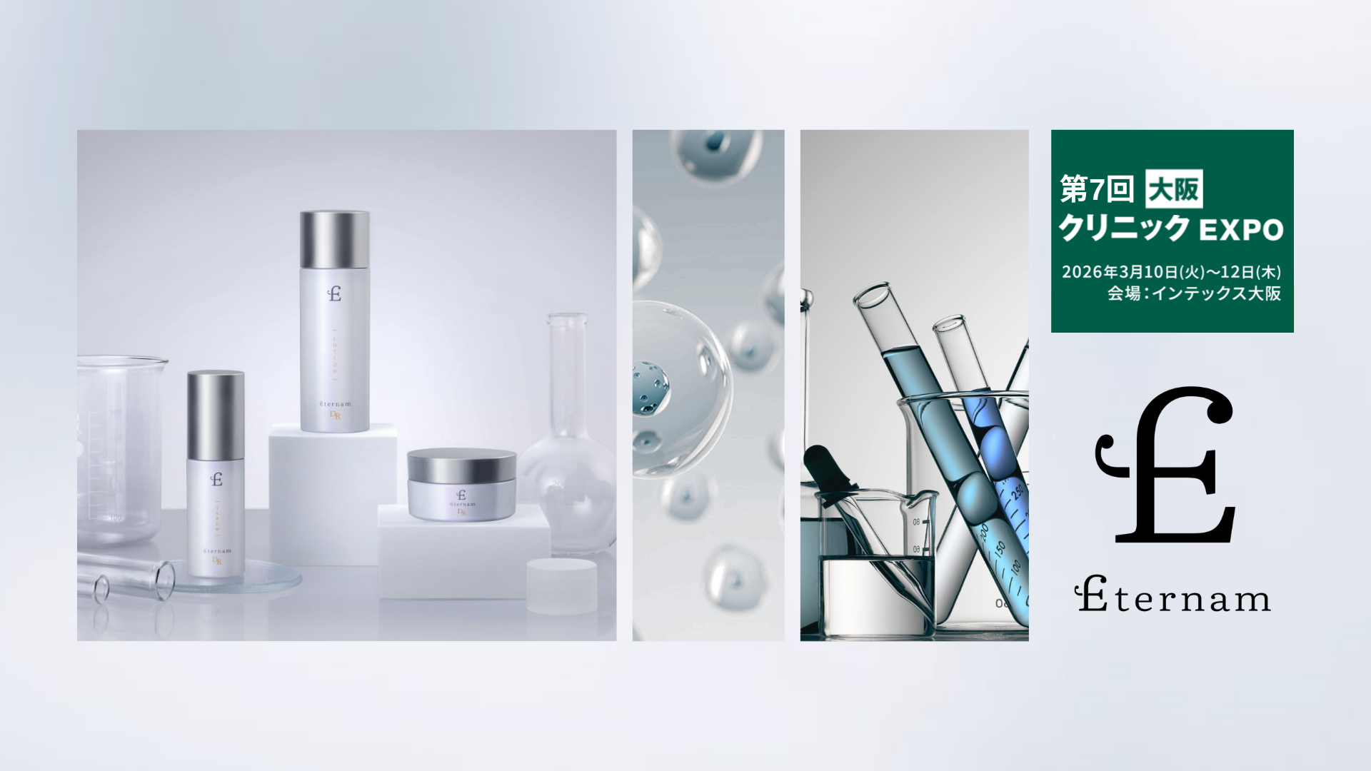 【展示会出展】再生医療から生まれたスキンケア「エテルナム」、第7回クリニックEXPO大阪に出展!展示会限定の特別価格と魅力的な特典を多数用意。