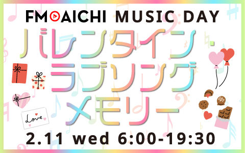 バレンタイン直前!2月11日(水・祝)のFM AICHIは“ラブソング”を特集! 「FM AICHI MUSIC DAY~バレンタイン・ラブソングメモリー~」
