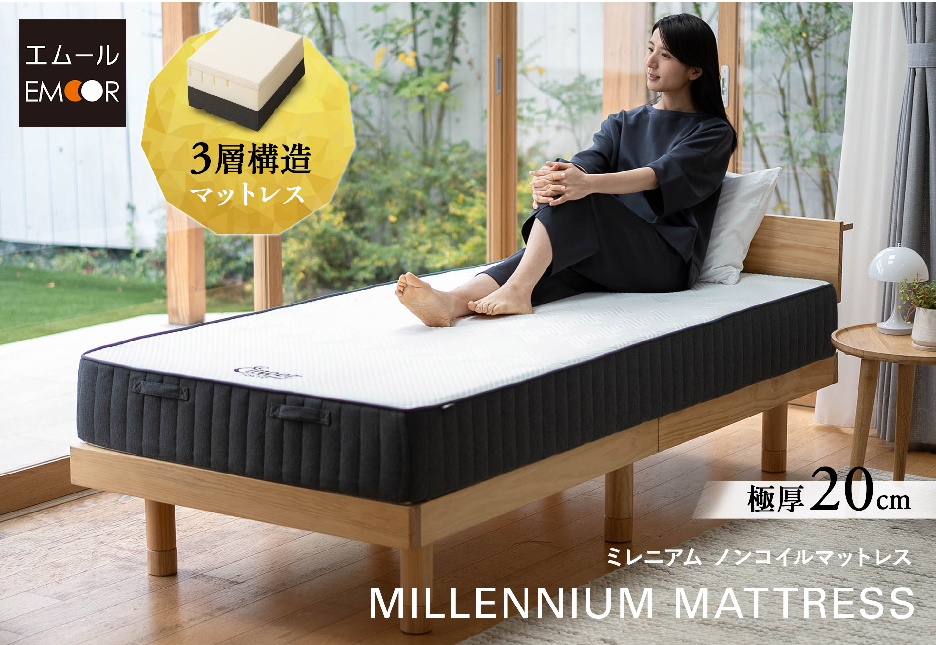 コイルマットレスの欠点を解消したホテルライクなマットレス『ミレニアム ノンコイルマットレス』が新登場!日本人研究者が推奨する3層構造で心地よい眠りへ。