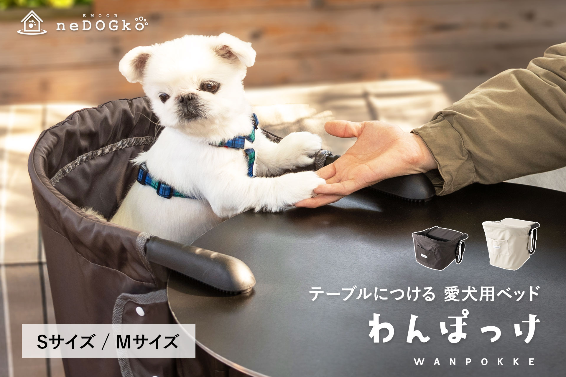 お客様の声から小さいサイズが新登場!テーブルにつける愛犬用ベッド『わんぽっけ』で愛犬とのカフェや旅行がもっと楽しくなる!