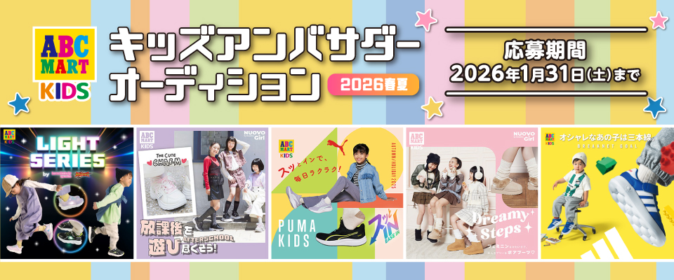 スマホ1つで簡単応募、親子・兄弟姉妹で参加OK! ABC-MARTで購入したお気に入りの靴を履いて応募しよう(ハート) 「キッズアンバサダーオーディション2026年春夏」募集開始