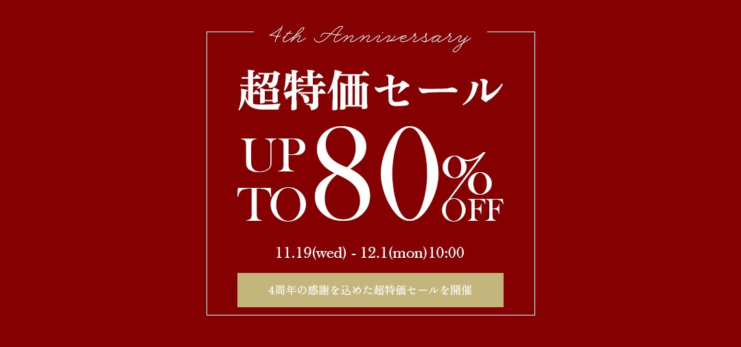 【東京ジュエリーインデックス】4周年記念祭、最後のイベントは最大80%OFFの1年で一番お得な大セール!
