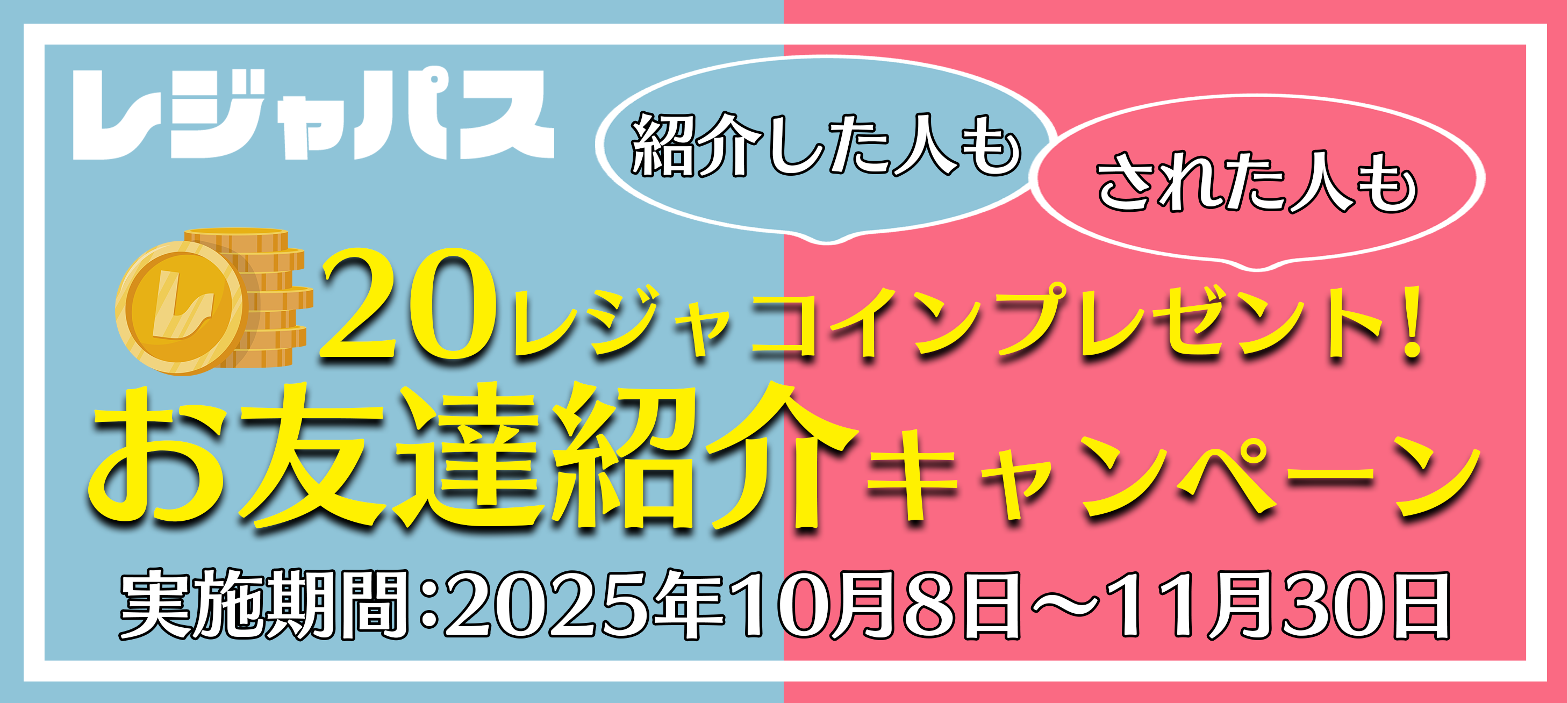 レジャー・エンタメの定額制サービス「レジャパス」友達紹介キャンペーン開催!紹介した方もされた方も20レジャコインプレゼント