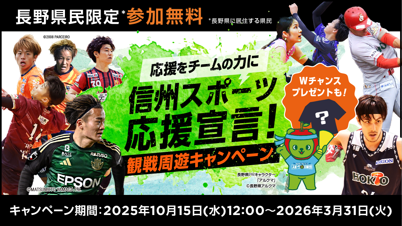 レジャー・エンタメの定額制サービス「レジャパス」で長野県のプロスポーツチーム観戦周遊キャンペーンを開催!3試合周遊で豪華賞品が当たるWチャンスも!