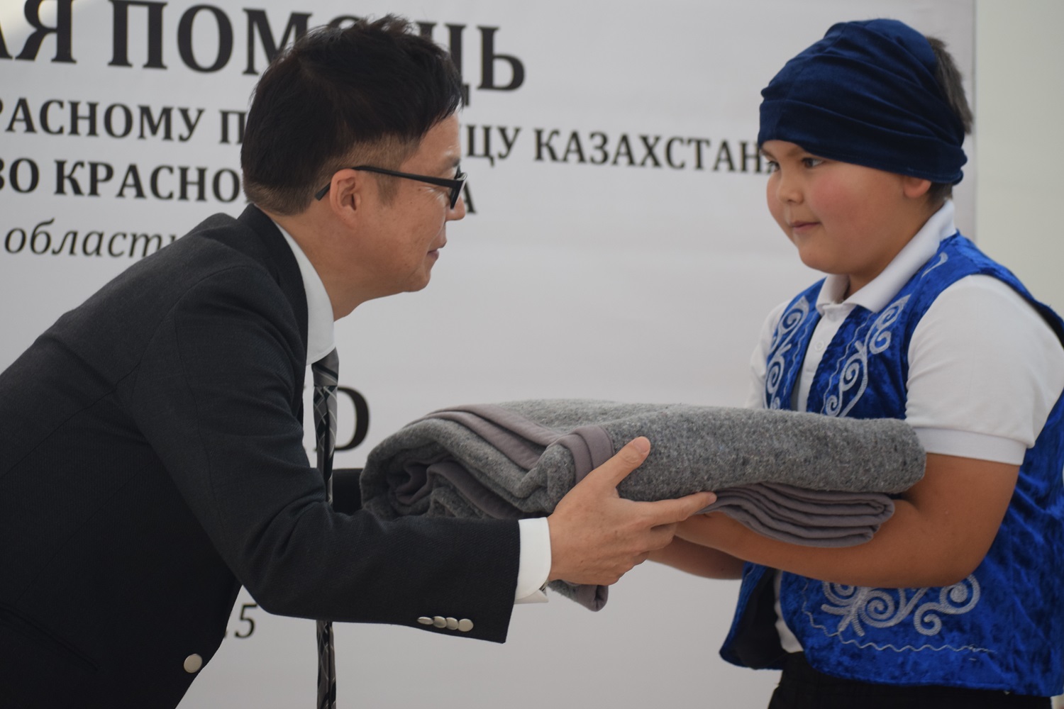 オンワードの回収衣料品から生産したリサイクル毛布4,000枚をカザフスタンへ寄贈