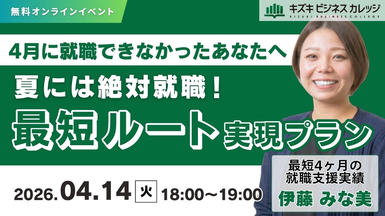 【04/14開催】夏には絶対就職!最短ルート実現プラン~4月に就職できなかったあなたへ~【無料/オンライン】