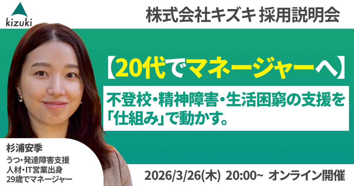 不登校・精神発達障害・生活困窮の支援を「仕組み」で動かす。20代でマネジャーへ! 株式会社キズキ採用説明会