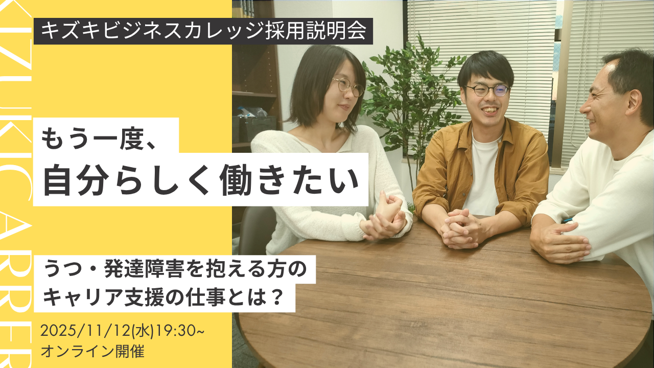 <2025年11月12日開催>うつや発達障害を抱える方のキャリア支援を通して「何度でもやり直せる社会をつくる」キズキビジネスカレッジのキャリアイベント開催