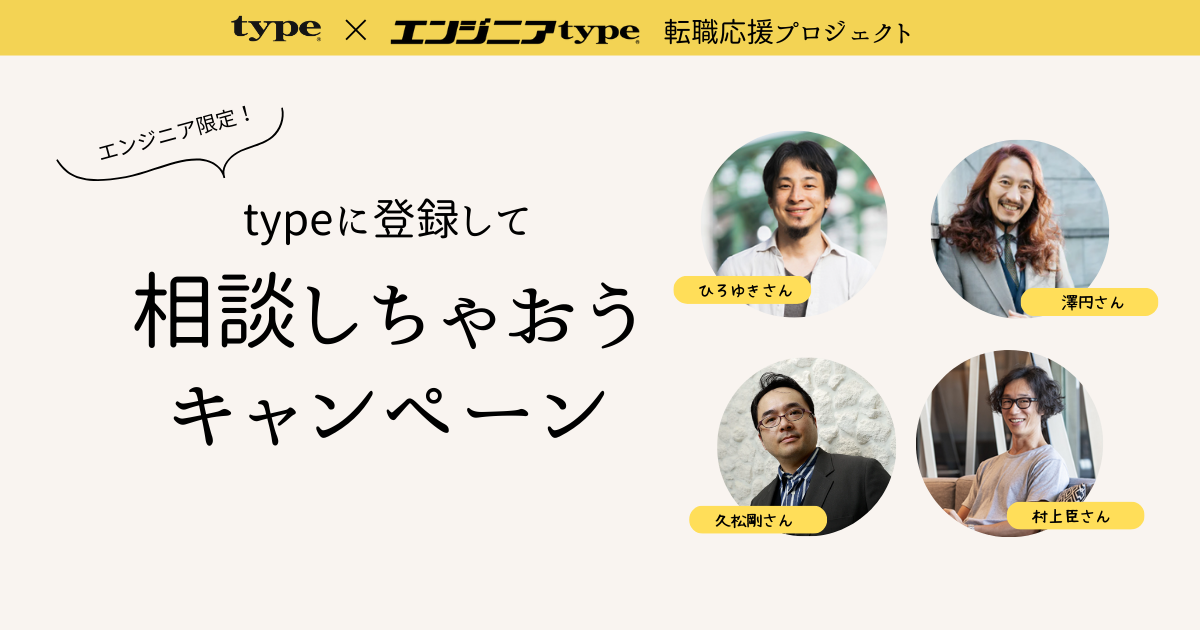 【著名IT識者4名がエンジニアの悩みに回答】ひろゆき氏、澤円氏、久松剛氏、村上臣氏が回答!キャリア転職サイト『type』が「エンジニアに相談できるキャンペーン」を開催