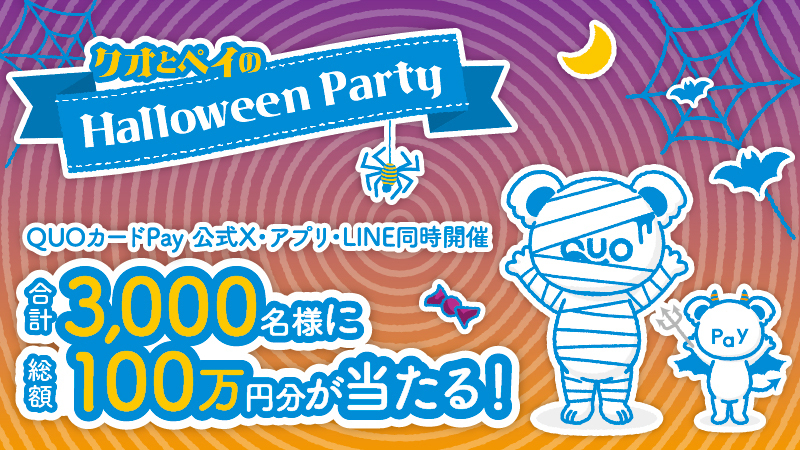 合計3,000名様に総額100万円分のQUOカードPayが当たる「クオとペイのハロウィーンパーティー」キャンペーンを10日24日(金)より開催