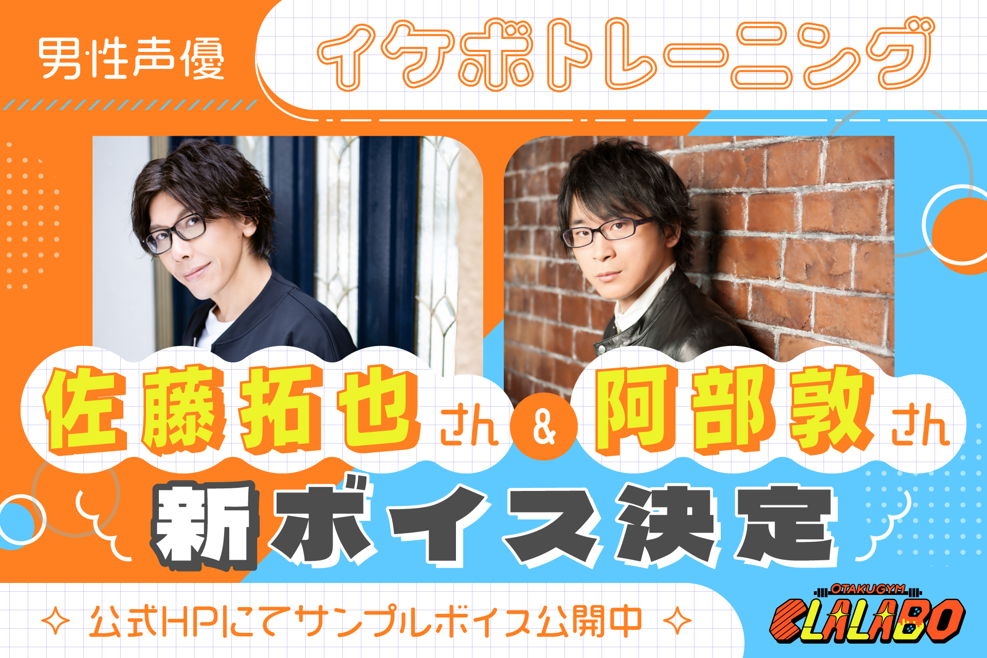 【オタクジムCLALABO】佐藤拓也さん&阿部敦さん「イケボトレーニング」新ボイス決定!1月17 日(土)より店頭公開