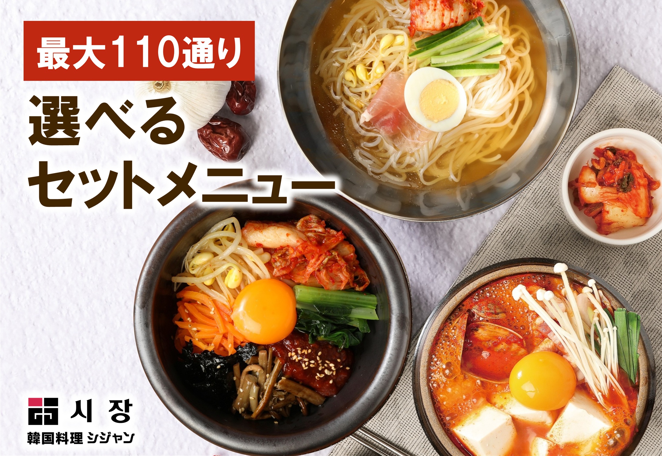 【最大110通り!あなた好みの選べるセットメニュー】韓国料理専門店 Korean Kitchen Shijan(シジャン)