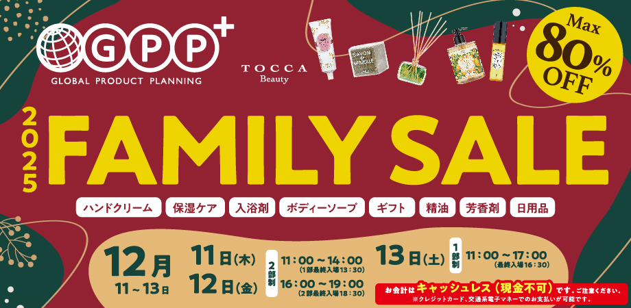 『 GPPファミリーセール2025』12月11日(木)~13日(土)の3日間開催!人気のボディケア・アロマ・バスアイテムなどが勢揃い