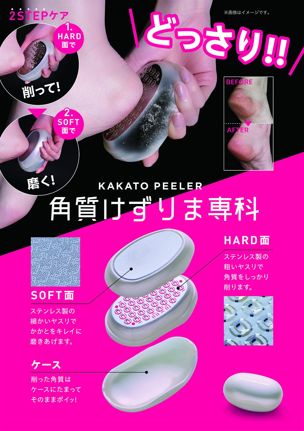 ガサガサかかとに。削って、磨いて、どっさり、ポイッ!「かかとピーラー 角質けずりま専科」を3月2日より発売