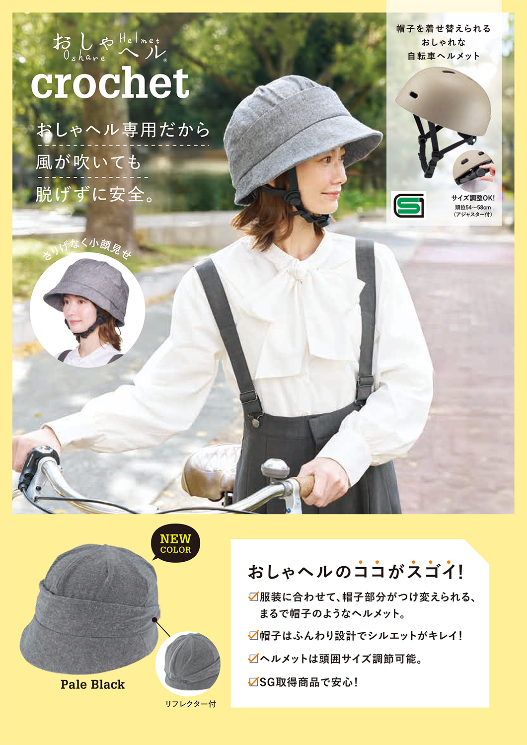 帽子を着せ替えられるおしゃれな自転車ヘルメット「おしゃヘル クロシェ」に新色登場!3月2日より発売