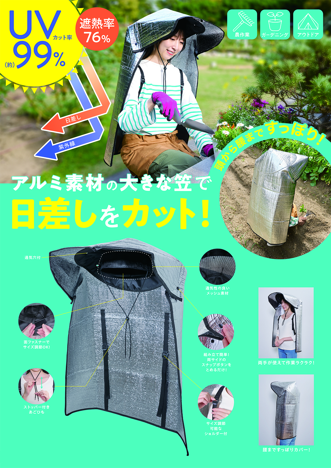 夏の屋外作業も、日差しをシャットアウト!「背中もカバー!ビッグアルミ笠」を3月2日より発売