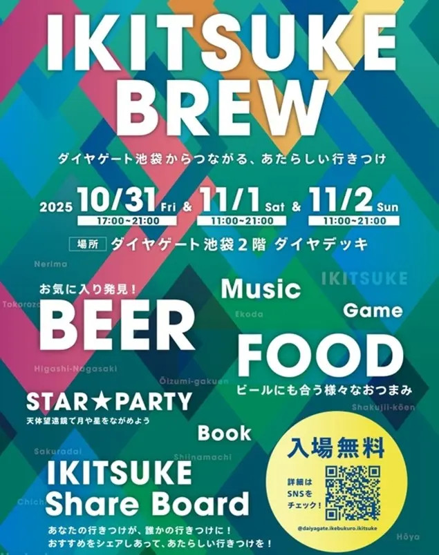 ダイヤゲート池袋で開催される「IKITSUKE BREW」に協力し、太陽&星空観望会を行います