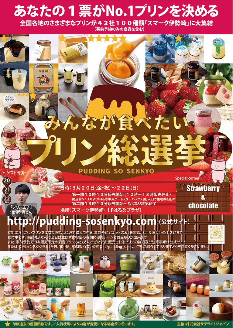 北関東のプリン愛好家の皆様お待たせしました!「第20回みんなが食べたいプリン総選挙」はスマーク伊勢崎に決定。テーマは“ストロベリー&チョコレート”プリンで楽しむアフタヌーンティー♫
