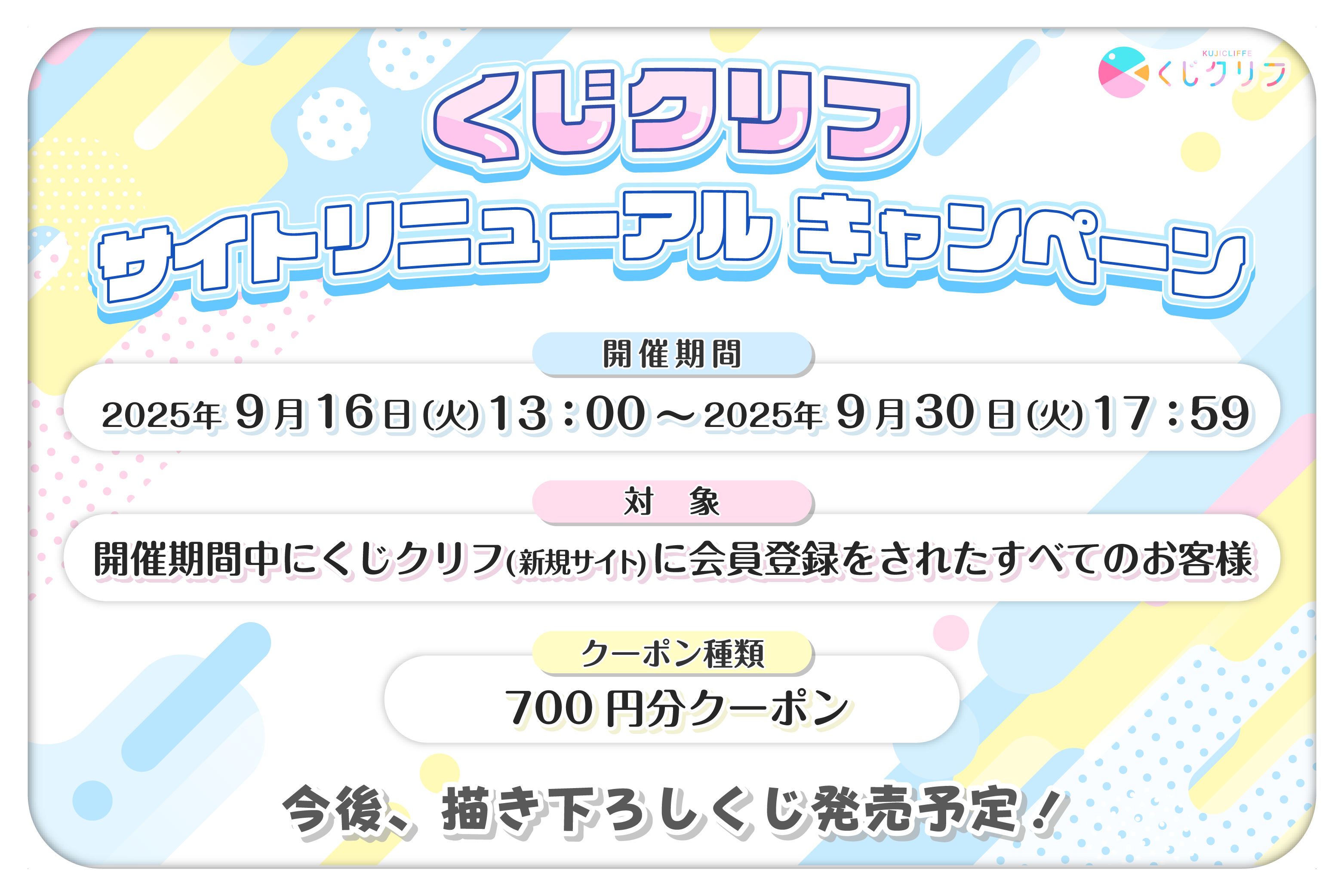 【くじクリフ】サイトリニューアルのお知らせ クーポン配布中!