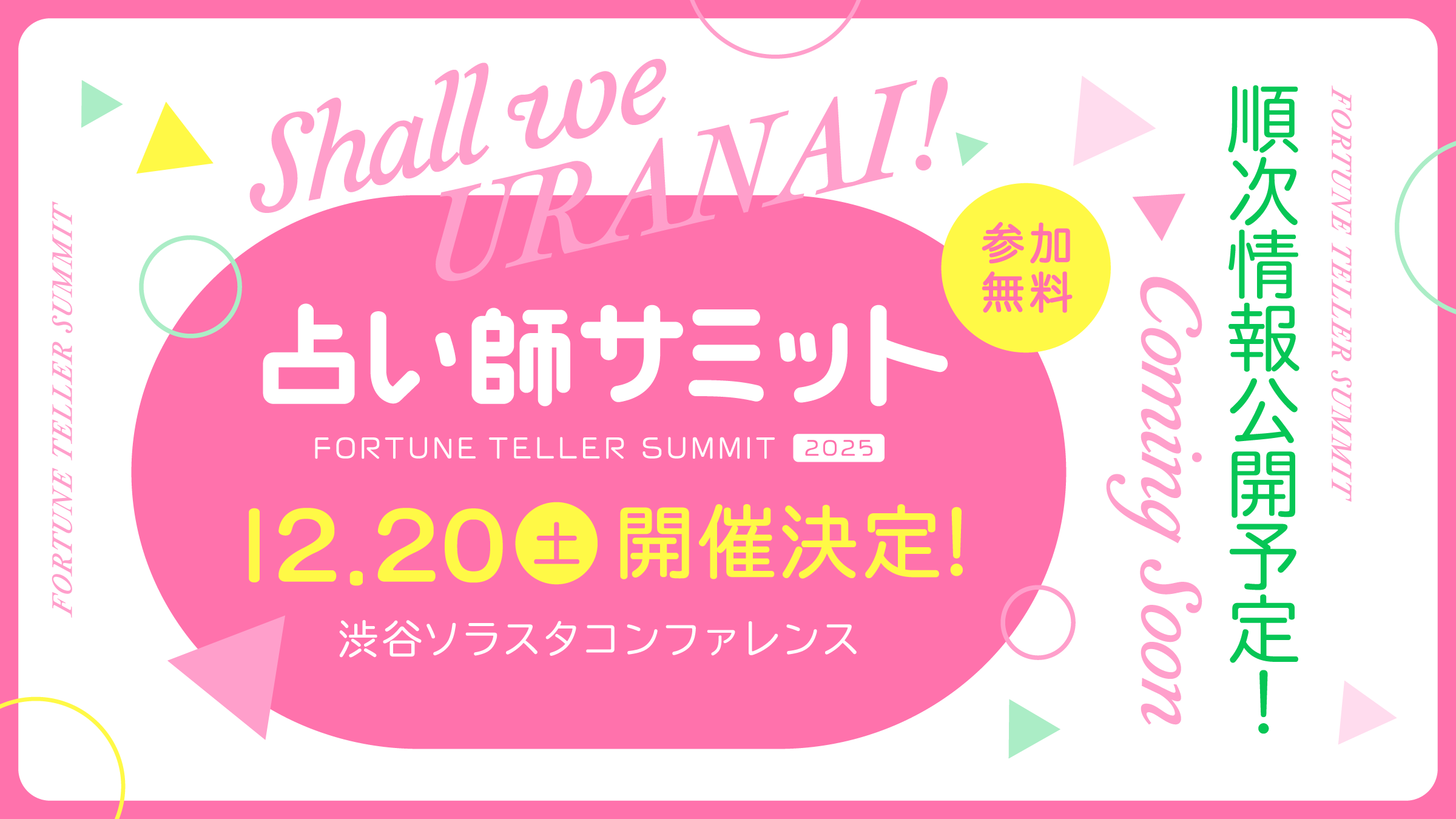 【2025年12月20日(土)東京・渋谷】占い師をこれから志す方、すでに占い師として活躍中の方へ!学び・交流・発信の場『占い師サミット』開催決定!