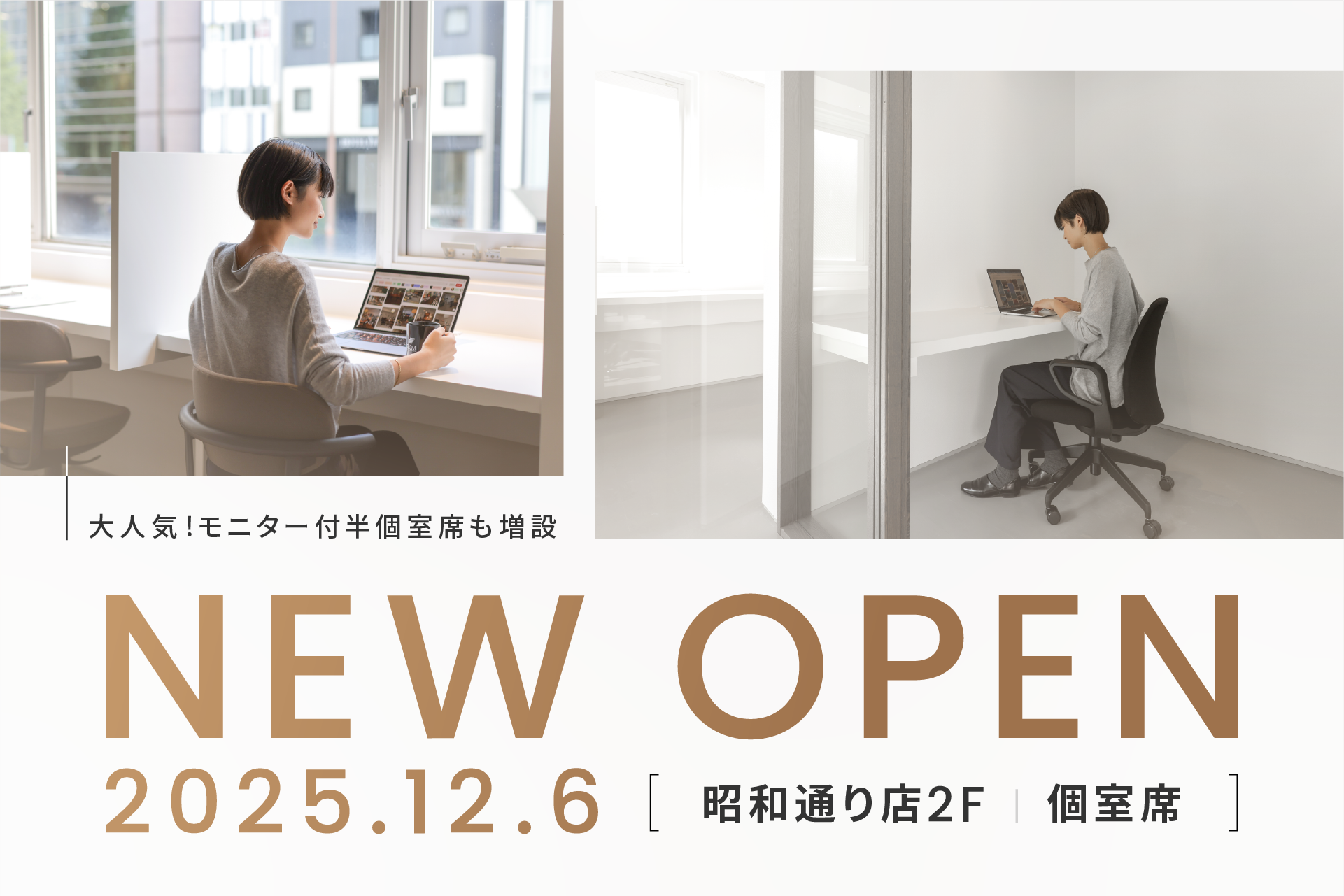 コワーキングスペース「the from 昭和通り店」2Fに個室フロアが新設!大人気モニター付き半個室席も増設