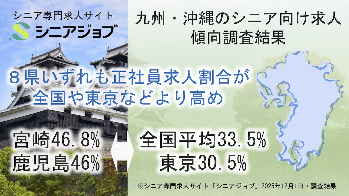 九州・沖縄のシニア向け求人の傾向を比較調査、正社員求人の割合高め