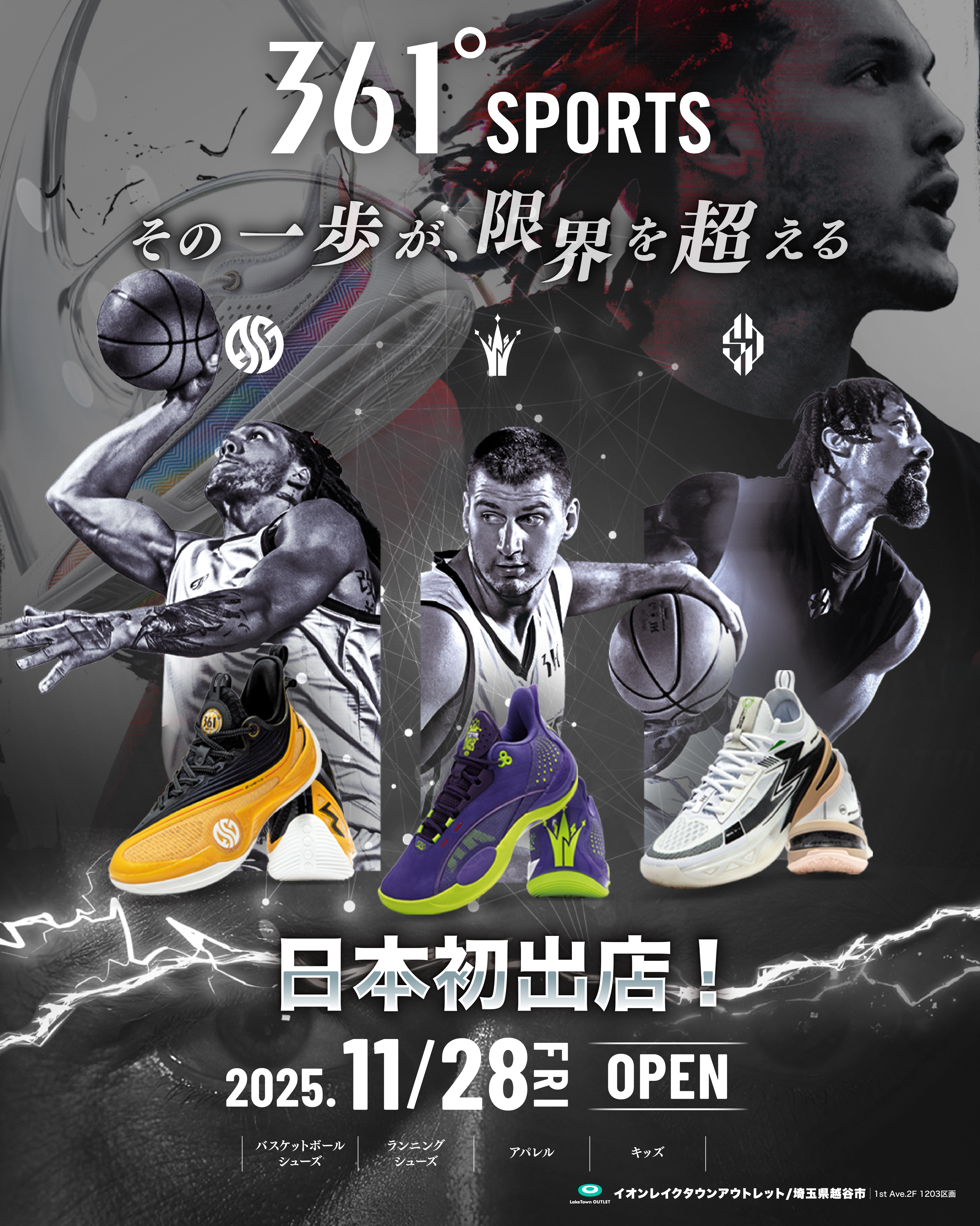 世界で 7000 以上の拠点を展開するグローバルスポーツブランド「361°(スリーシックスティーワン)」の日本第1号店が11月28日(金)に越谷イオンレイクタウンにてオープンします!