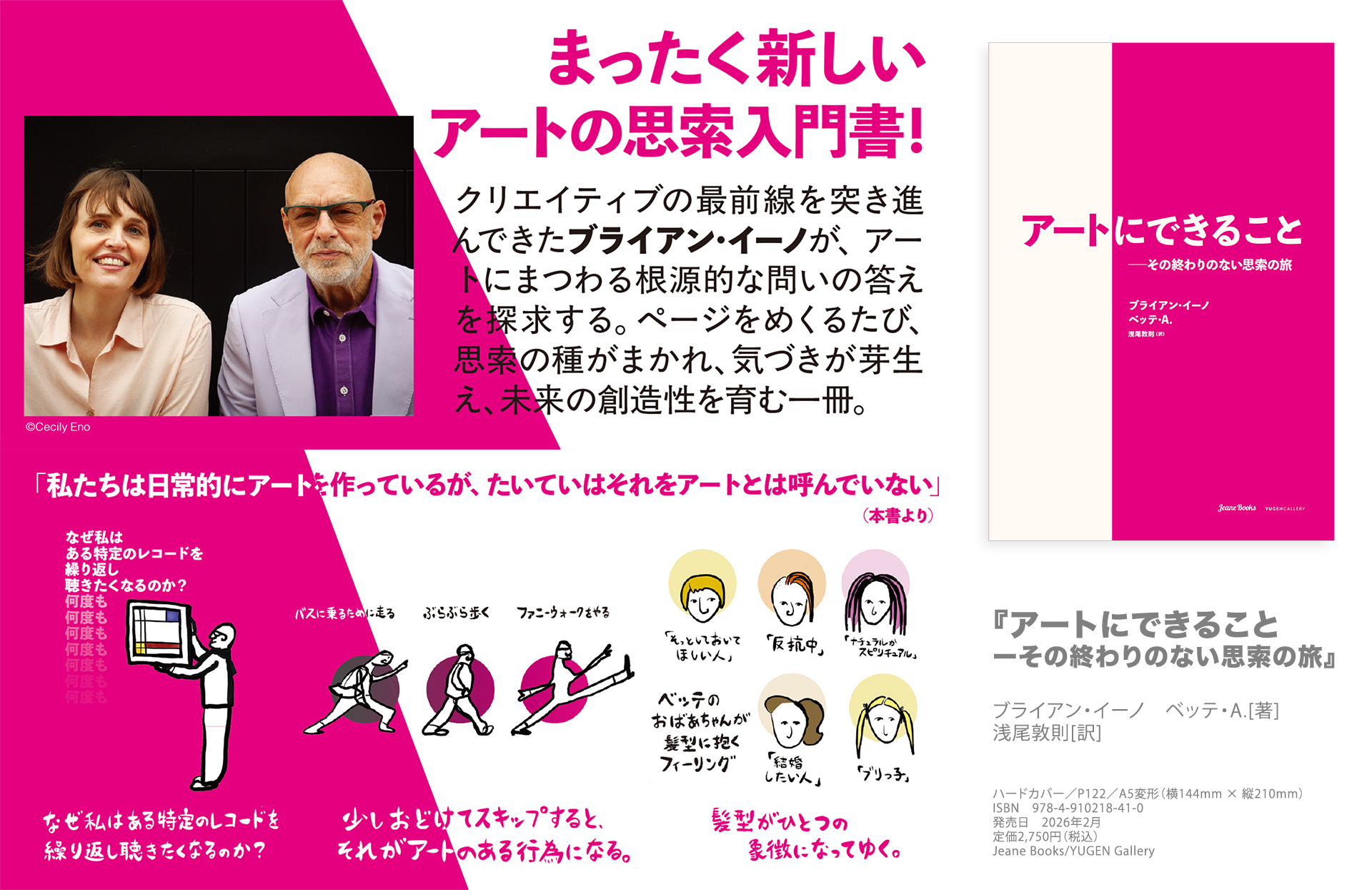 「私たちは、なぜアートを必要とするのだろう?」伝説のアーティスト、ブライアン・イーノが贈るまったく新しいアートの思索入門書『アートにできることーその終わりのない思索の旅』がジーンブックスより発売決定!