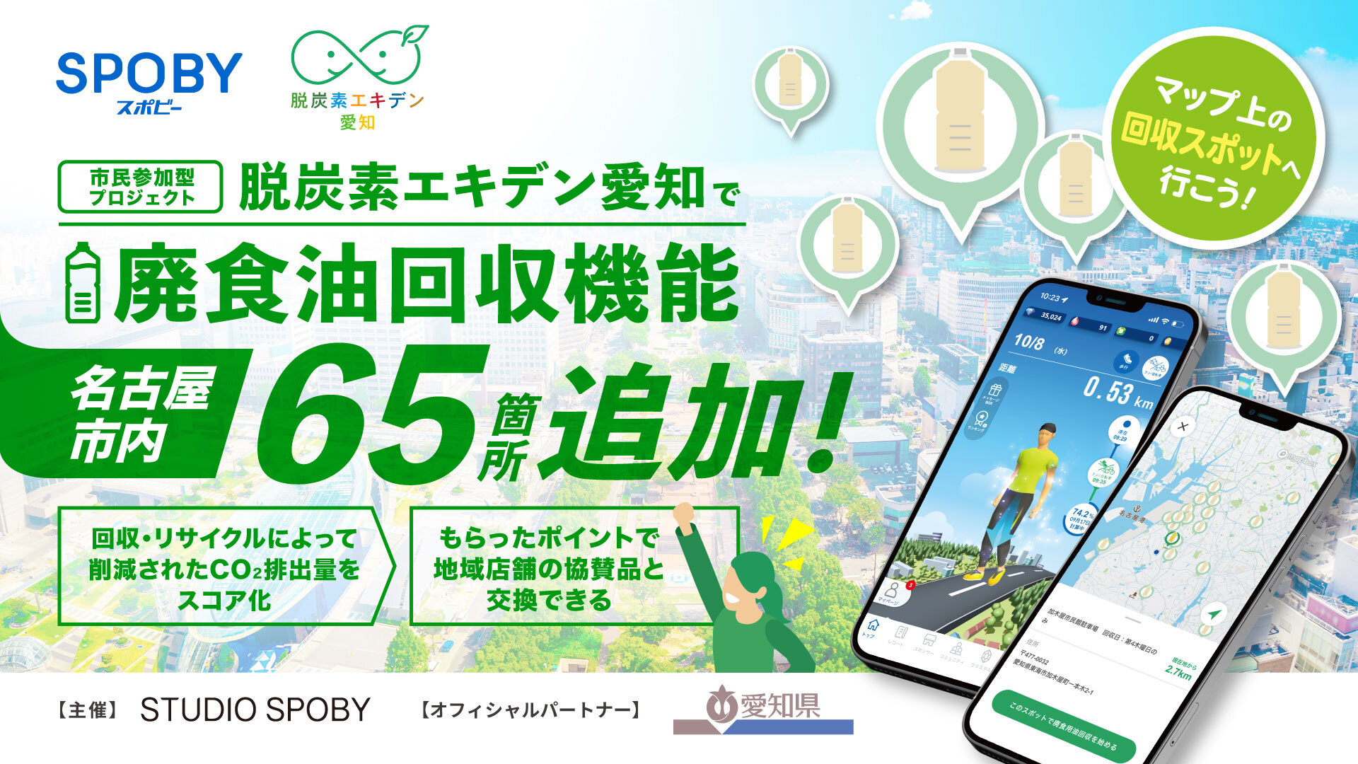 スタジオスポビー×愛知県 市民参加型プロジェクト「脱炭素エキデン愛知」で廃食油回収スポット名古屋市内65箇所が追加