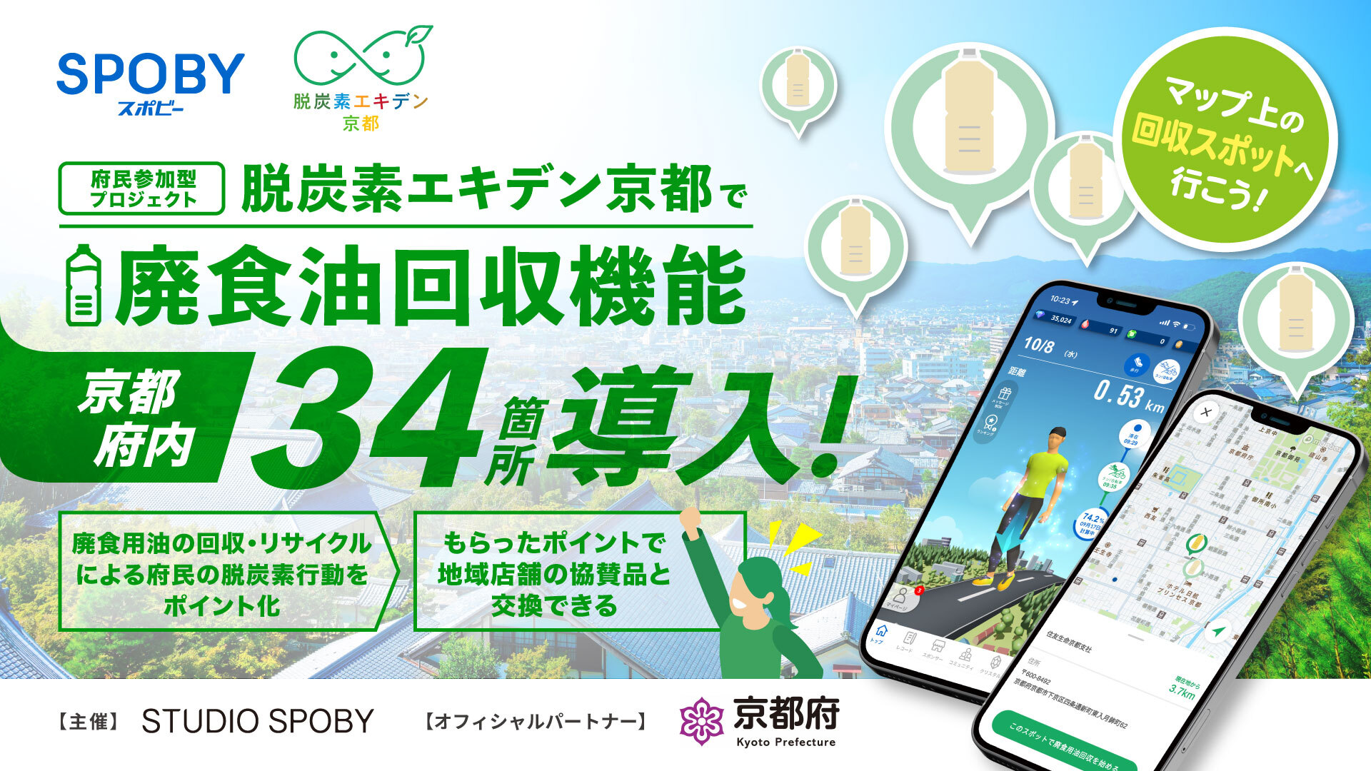 スタジオスポビー×京都府 「脱炭素エキデン京都」で廃食用油の回収・リサイクルによる市民の脱炭素行動をポイント化