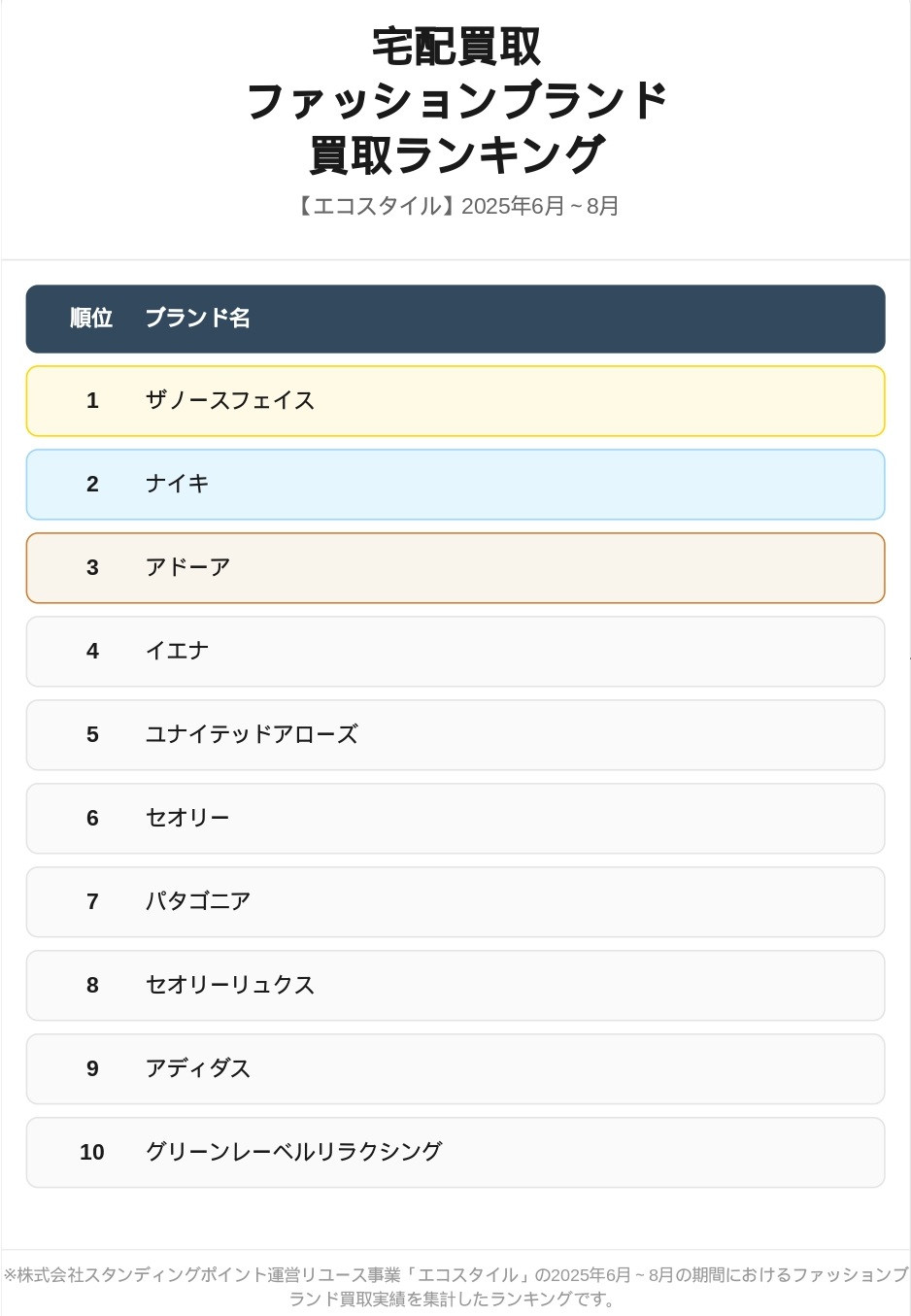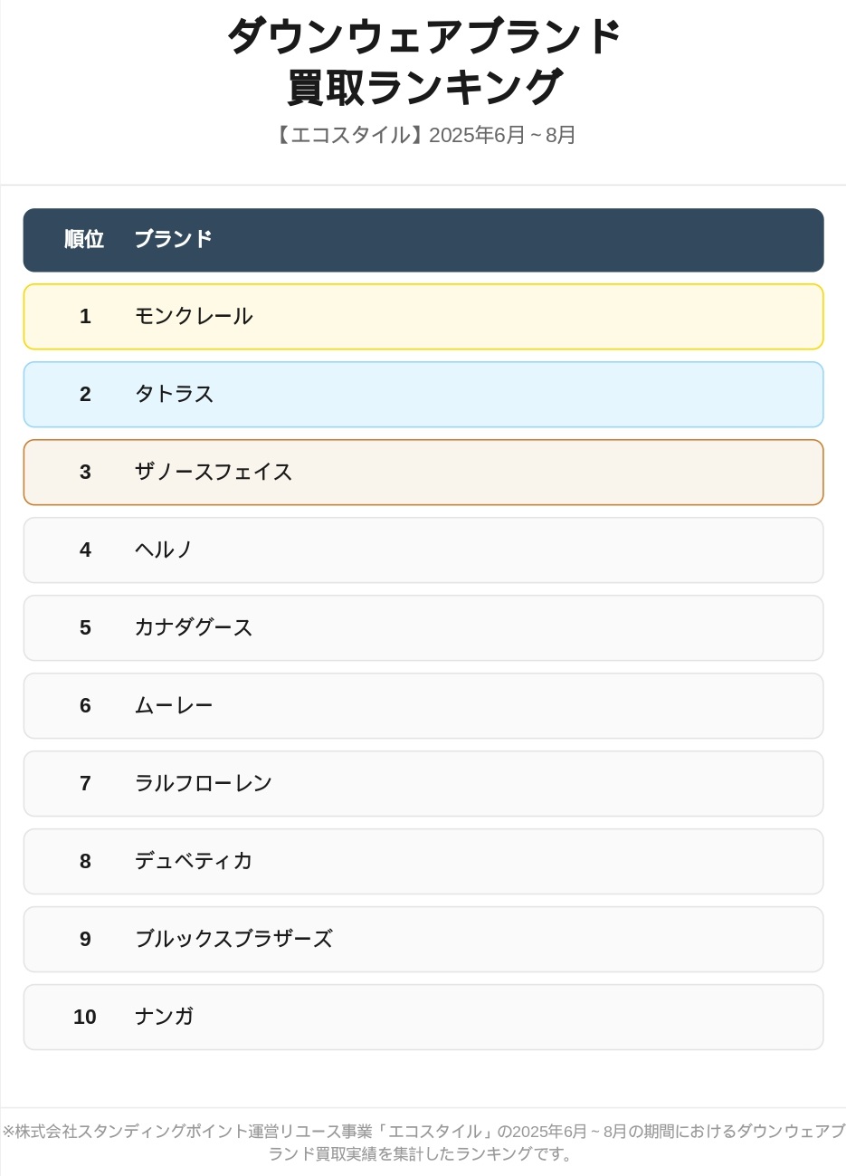 洋服・ブランド品買取「エコスタイル」|ダウンウェアブランドの買取ランキング(2025年6月~8月)