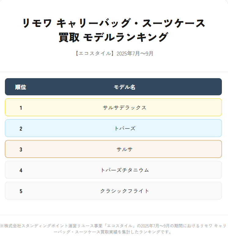 洋服・ブランド品買取「エコスタイル」|リモワの人気モデルは?モデル別買取ランキングを発表(2025年7月~9月)