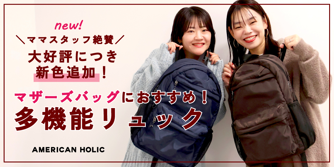 【AMERICAN HOLIC】大人気の多機能リュックに新色が登場!ママスタッフも絶賛する画期的な大容量リュックを11月6日(木)に発売
