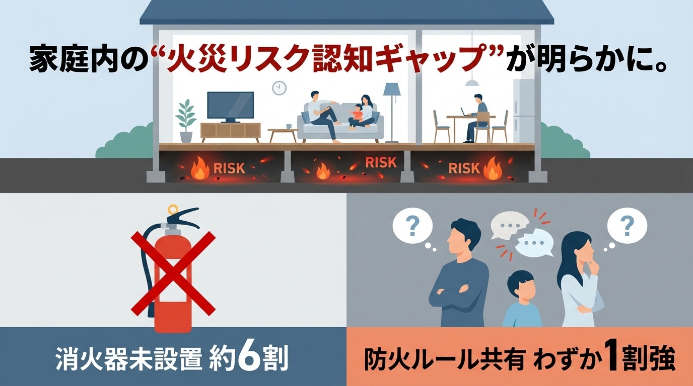 家庭内の“火災リスク認知ギャップ”が明らかに。消火器未設置は約6割、家族での防火ルール共有はわずか1割強。