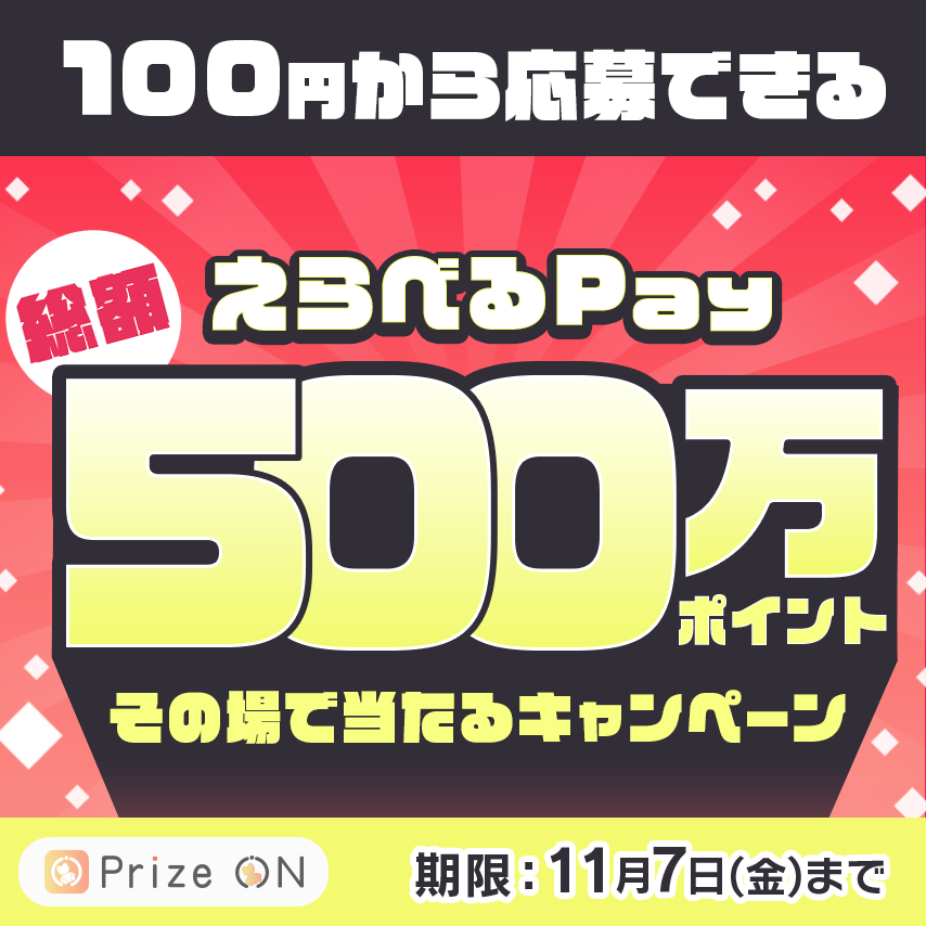 その場で当たる!「『えらべるPay(R)』 総額500万ポイント抽選キャンペーン」Prize ON対象店舗にて9月19日(金)より開催決定