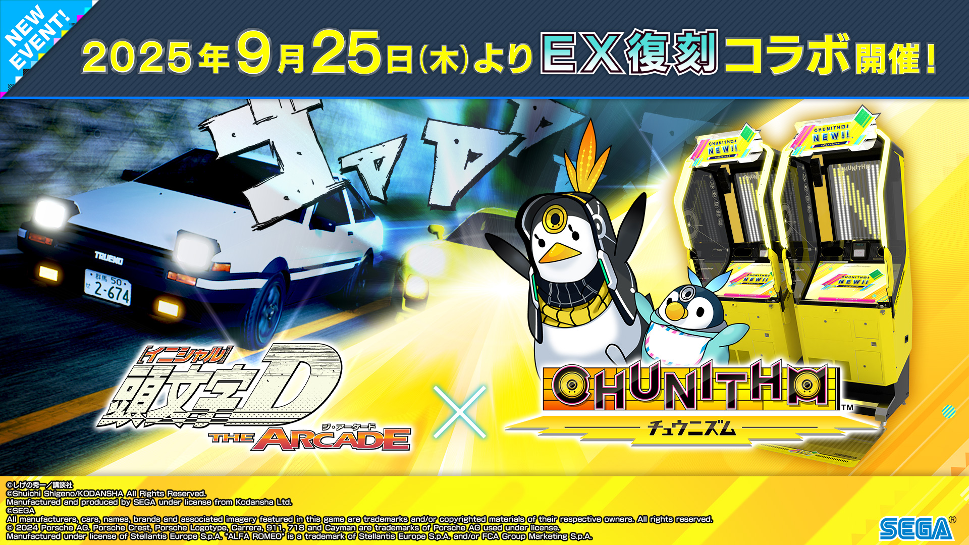 『頭文字D THE ARCADE』 9月25日(木)より『CHUNITHM』コラボEX復刻開催!