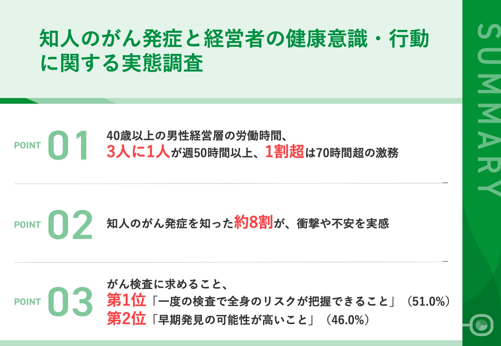 【知人のがん発症を経験した経営層100名調査】がんリスク意識は6割が向上も、実際の検査受診は4割どまり「忙しい」「事業優先」で自分の健康は二の次に