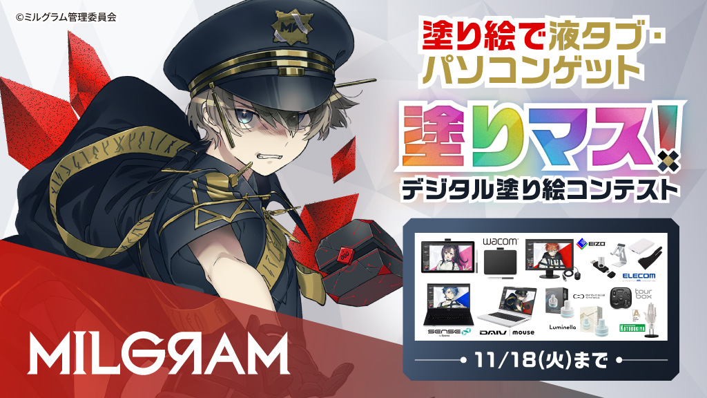 「MILGRAM -ミルグラム-」と塗り絵コンテスト「塗りマス!」がコラボレーション 第二審の看守エスと囚人たちの線画を塗って、液タブ・パソコンなど豪華賞品をゲット
