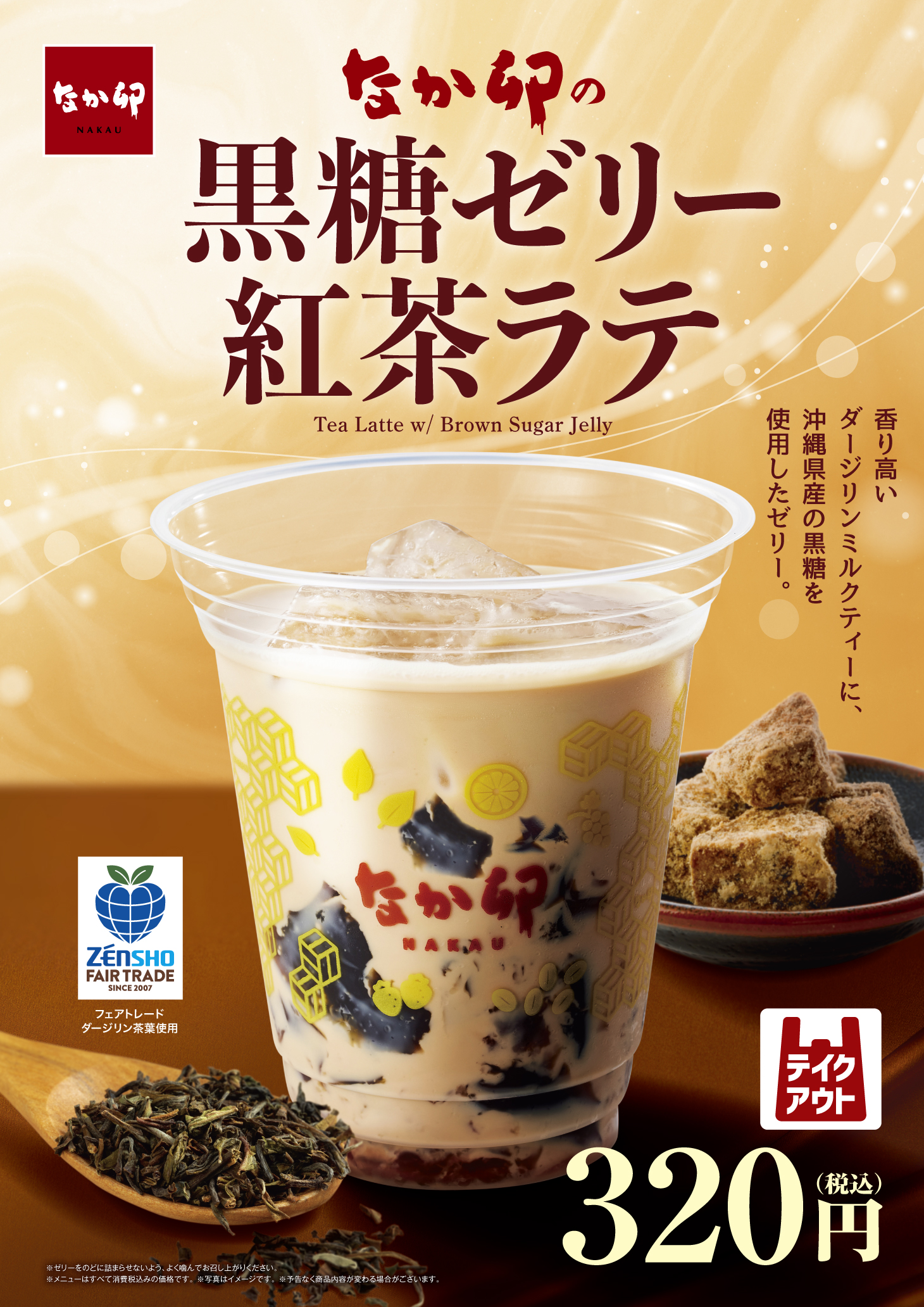 【なか卯】ダージリンミルクティーと黒糖ゼリーが織りなす、至福の一杯 なか卯が「黒糖ゼリー紅茶ラテ」を新発売!