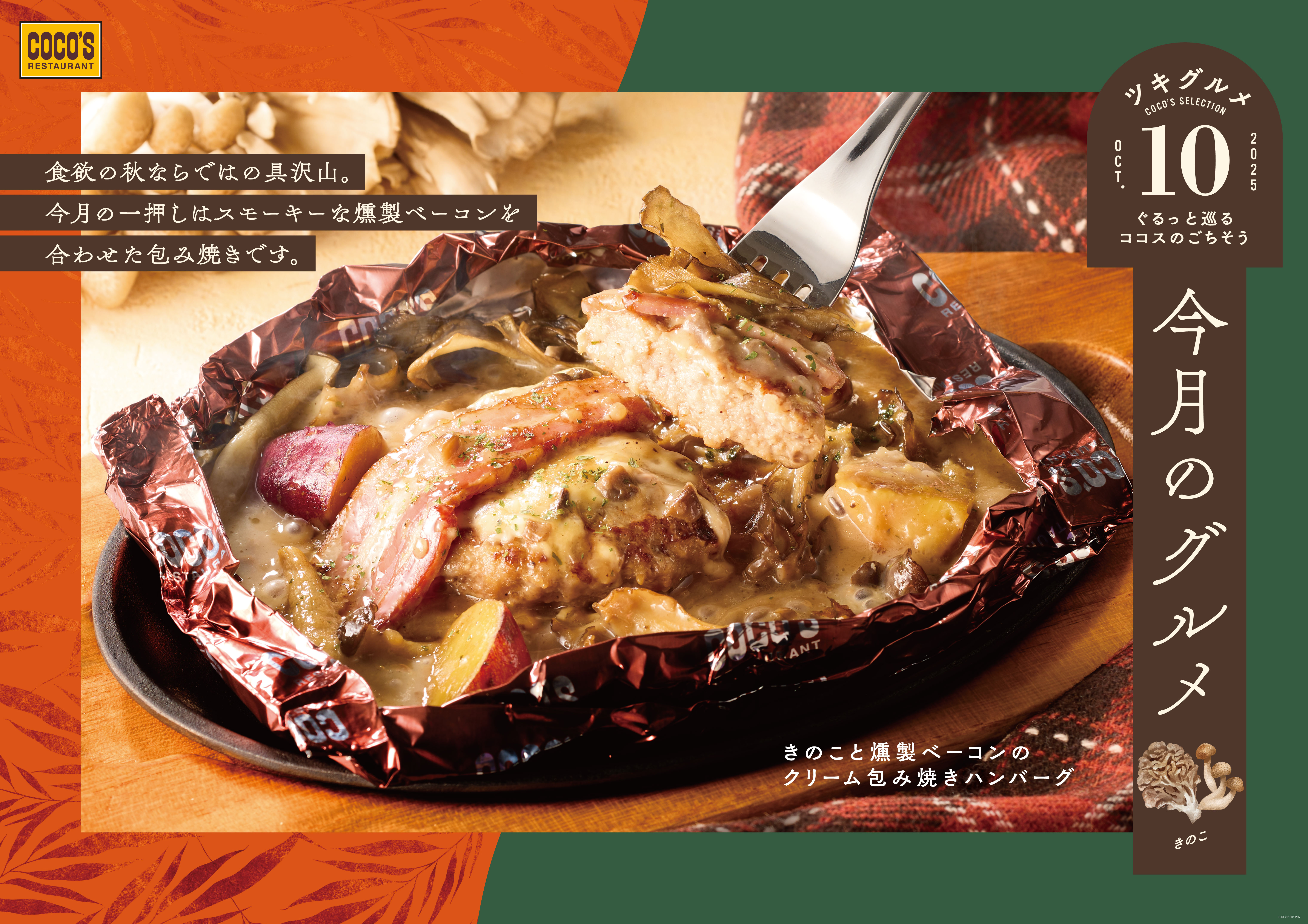 【ココス】旨みたっぷり!きのこを味わう包み焼きハンバーグとアペタイザーが登場!ココスが「今月のグルメ~10月~」を開催!