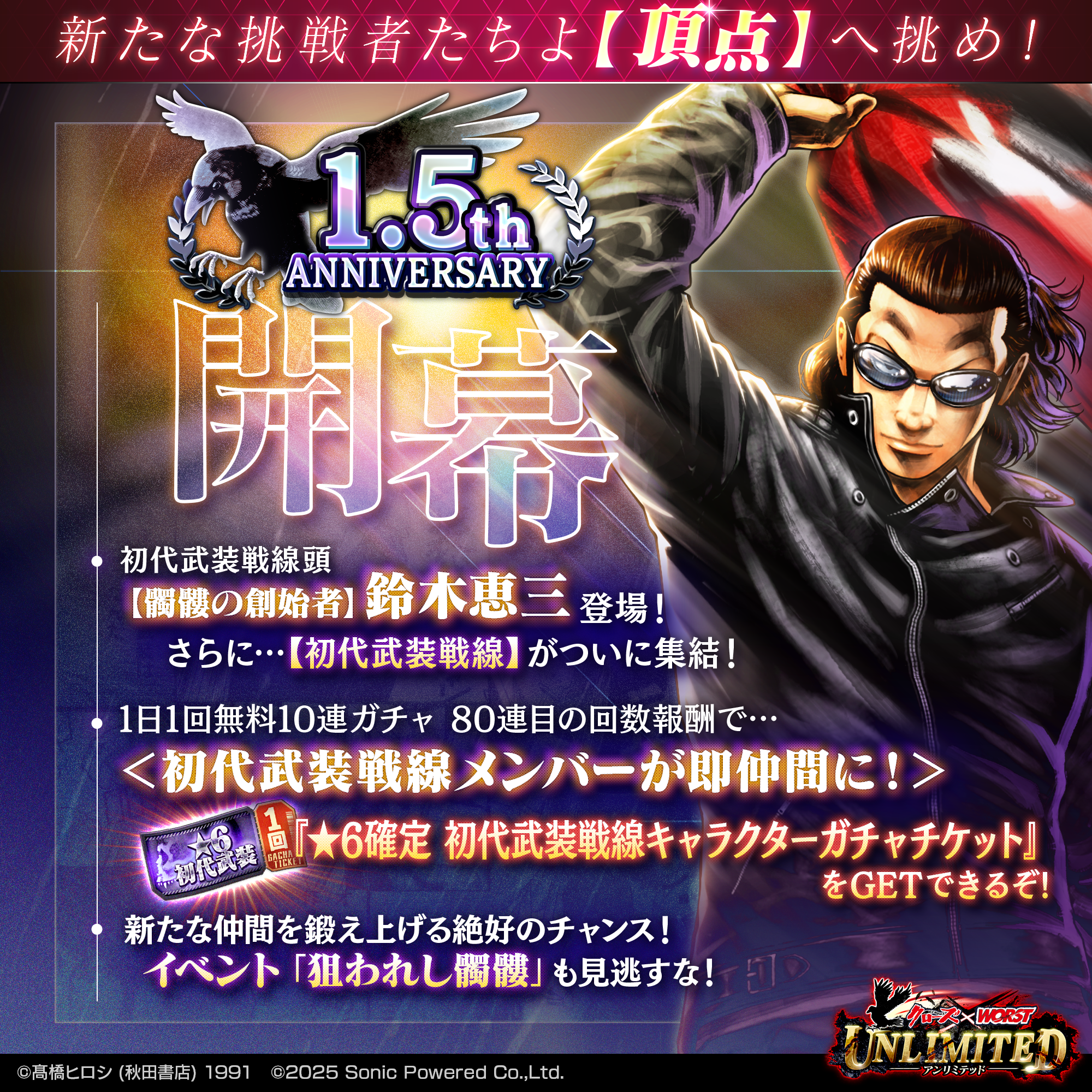 スマホゲーム 「クローズ×WORST UNLIMITED」 祝1.5周年!10月10日(金)より <1.5th アニバーサリー> 開幕!!