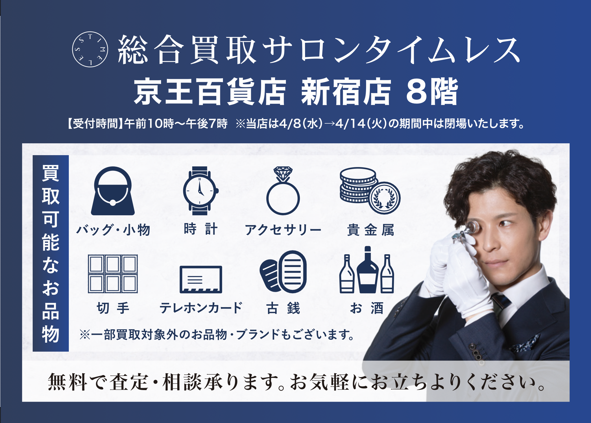 【期間限定店舗】総合リユース業で百貨店出店数No.1(※1)の株式会社タイムレスが京王百貨店新宿店8階にて期間限定で「総合買取サロン タイムレス 京王百貨店新宿店」を出店中
