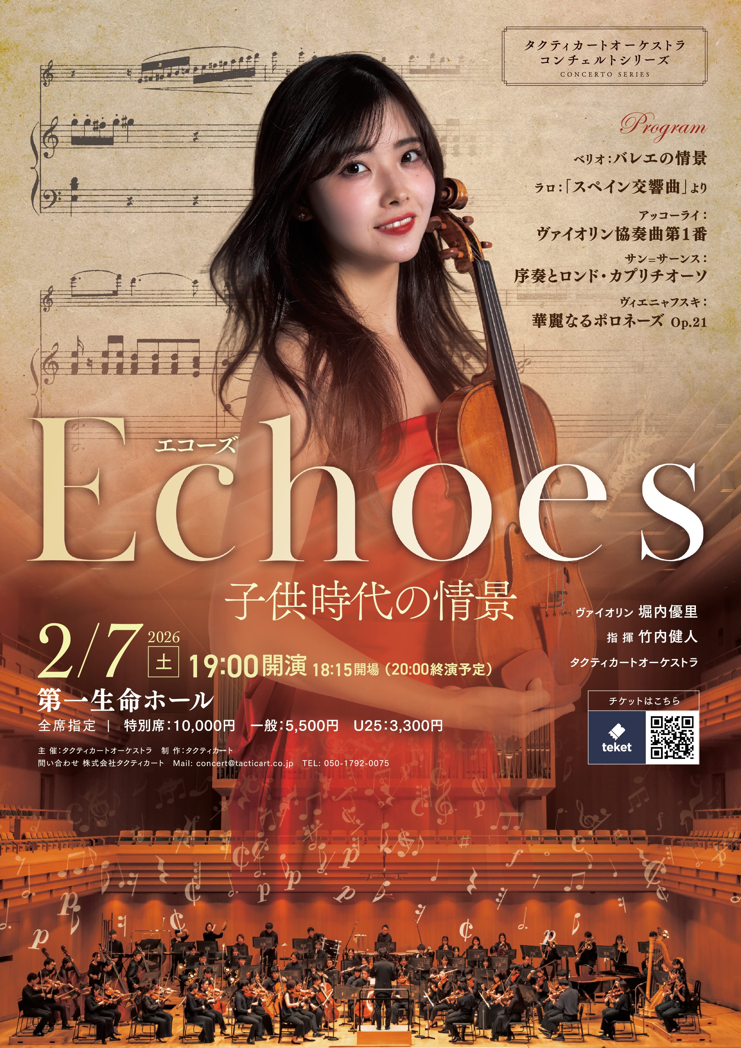 ヴァイオリニスト・堀内優里、タクティカートオーケストラと送る《Echoes ―子供時代の情景―》開催決定!― 誰もが通った名曲から、自身の記憶に刻まれた旋律まで ─