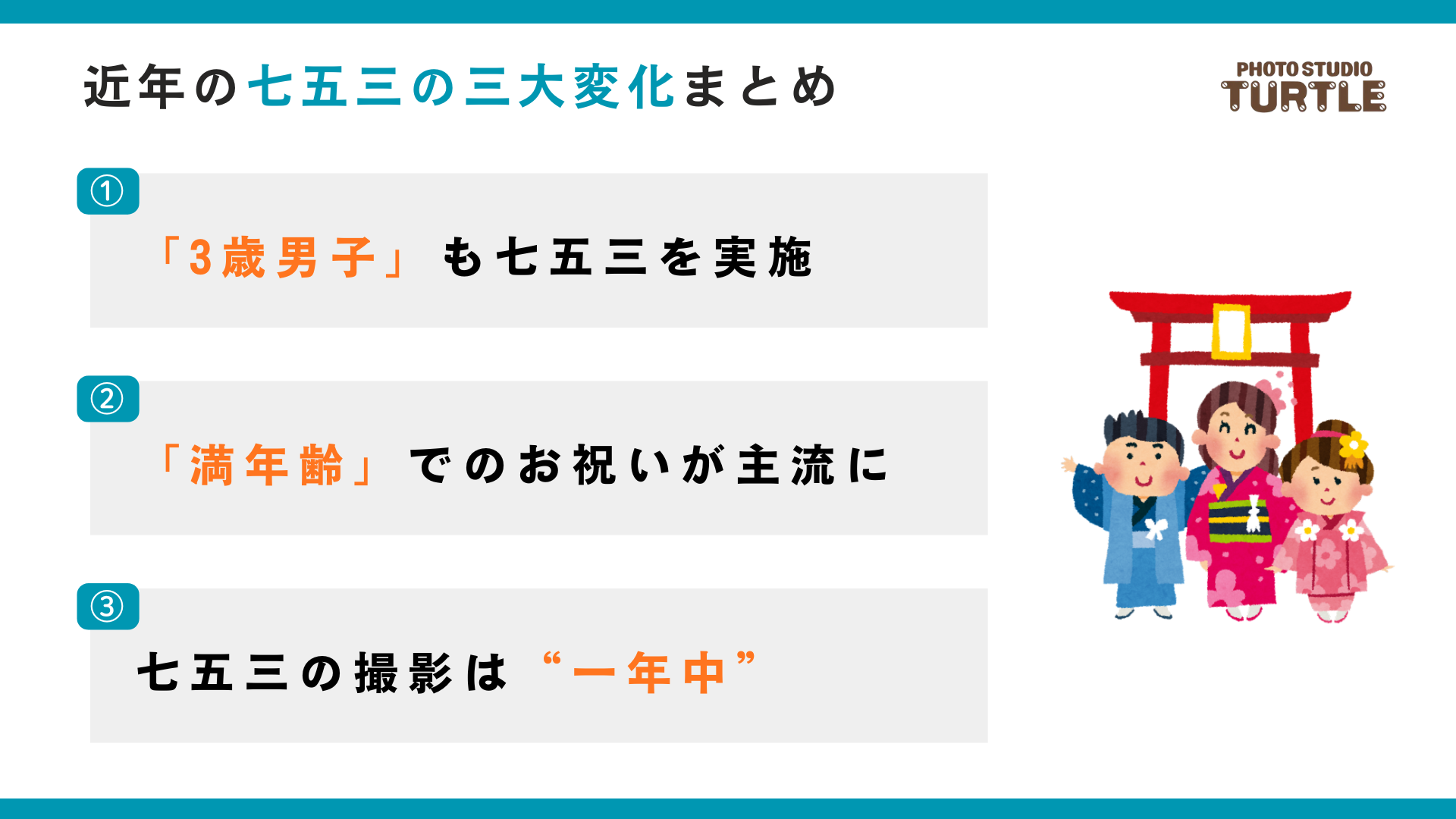 東海地方で25店舗を展開する写真館タートルが、近年の「七五三の三大変化」を発表
